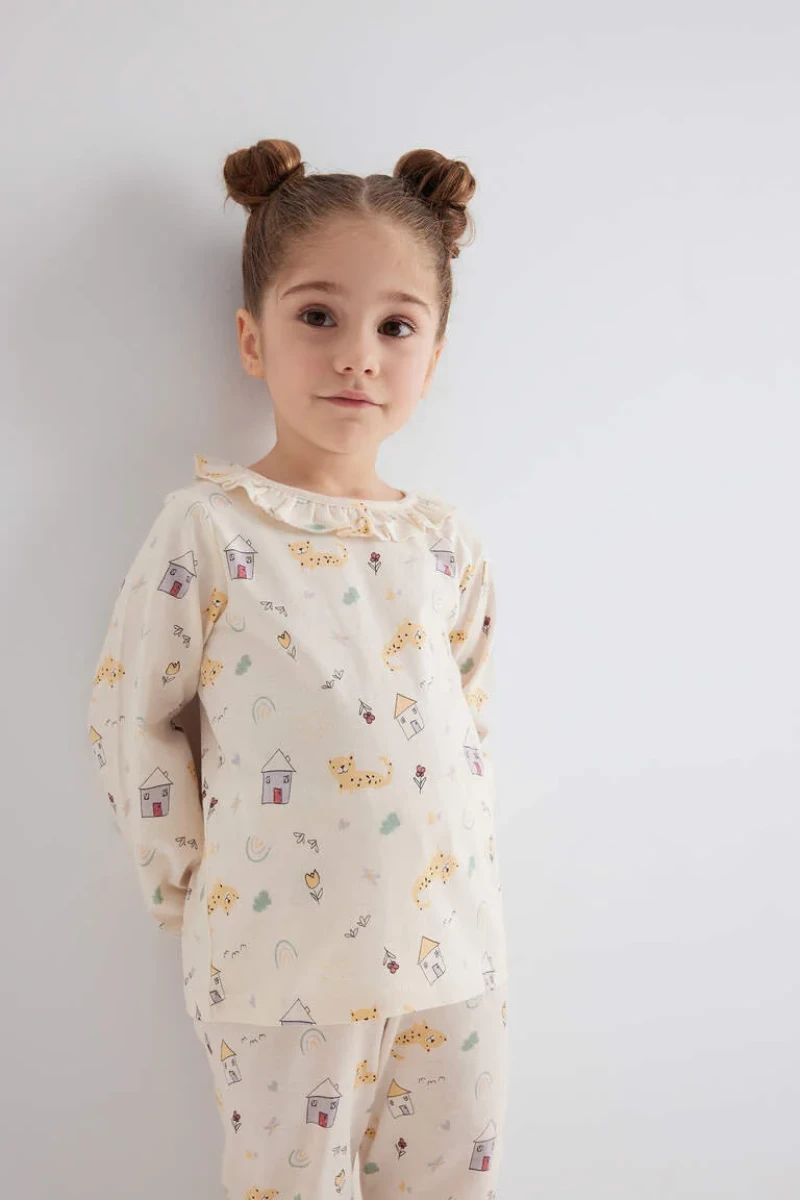 Baby Girl Animal Patterned Long Sleeve Combed Cotton Pajama Set